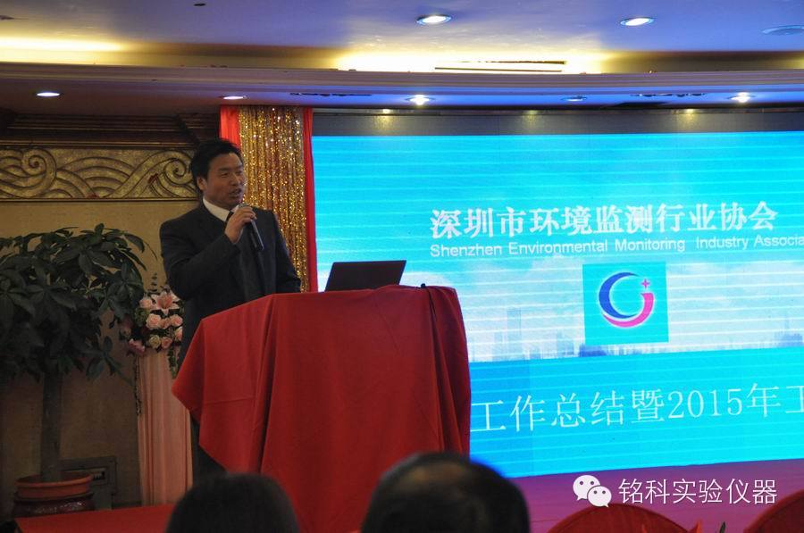 深圳环境监测行业协会杨立军会长做2014年度协会工作总结及2015年工作安排。致辞中表示:“深圳市环境监测行业协会将引来新的一年,我们将在“四个方面”批示精神指引下,肩负使命,牢记重托,与时并进,开拓创新,为把协会建设得更好而开启新的航程,为推进我市监测事业的快速发展而努力奋斗,为全面建设幸福深圳做出贡献!”